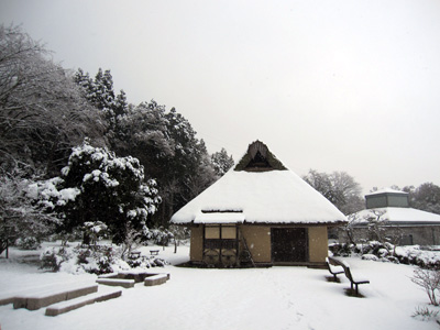 | 「文芸の里」や安土城考古博物館のあるこのあたり一帯は歴史公園「近江風土記の丘」になっています。広いエリアにはいろいろの建物が展示されている。 |