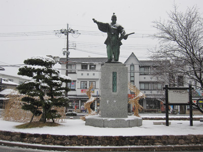 空模様が小雨混じりの強い風になり、あきらめて安土駅へ戻りました。