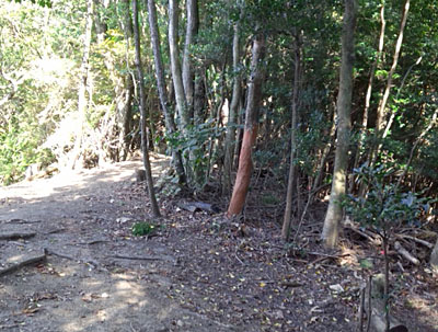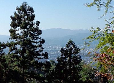 ![]() 樹間から愛宕山の尖った頂上が望める。 |