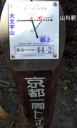 ![]() さらに5分ほど進むと次の道標に出会う。 大文字山の頂上は近い。 |