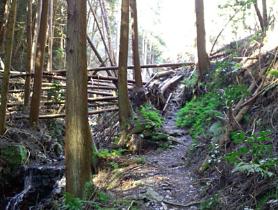 | 京都側の下山道は山科からのような荒れ道はない。歩きやすい道がつづく。 | |||