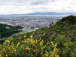 守山野洲市街の遠方には琵琶湖・比叡山が望める。 |