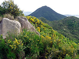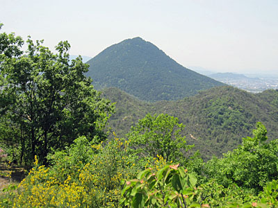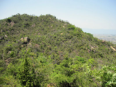 田中山は十数年前(だと思う)に山火事があり、長い間赤茶色の地肌をさらしたグロテスクな山姿をしていました。最近になっていろんな団体の方々の努力が実りやっと緑が戻ってきました。 |