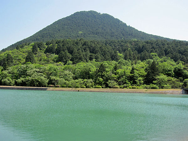 いつもエメラルドグリーン水をたたえている御池と三上山 |