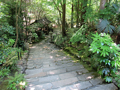 門を出て参道の石段を下って御池に向かう |