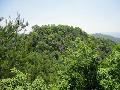 下山道から見える北縦走路(尾根道) |