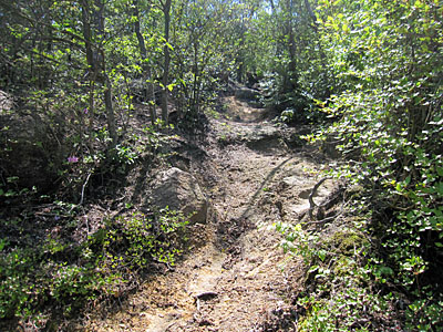 | 登山道はすぐ薄暗い樹林の中に入るが、ほんの少しでいきなり急登がはじまる。ここまでは事前に登山ルートをチェックしていたので迷うことはありませんでした。