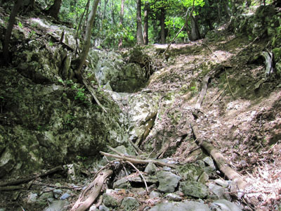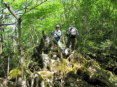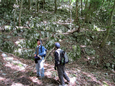 ![]() カルスト台地特有の岩が、あちこちに露出している。 |