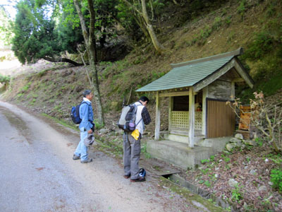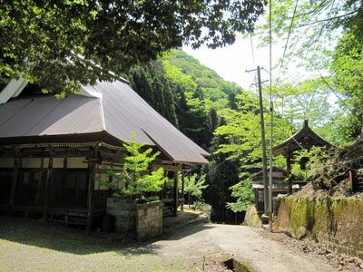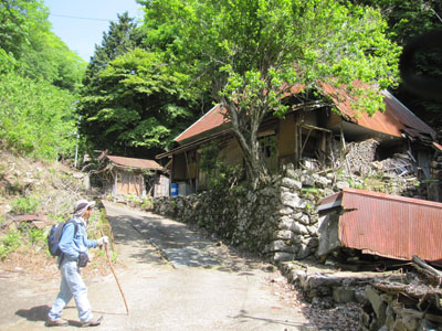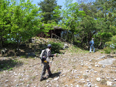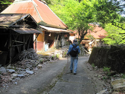 集落はかなり標高の高いところにありました。朽ちた建屋があちこちにあり、スケッチ心を誘われる。![]() 甲頭倉集落の中ほどにあった神社とお寺