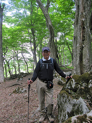 | いつもは一人登山、記念スナップはほとんどないが、 今回の山行はメンバー三人、写真も撮ってもらえるし、心強いく危険回避にもありがたい。 |