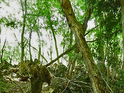 ![]() イワスの頂上は砕石場上の樹林の中でした。 |