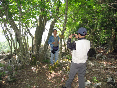 ![]() カルスト台地特有の露出している岩と記念スナップ |