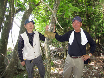 ![]() 山名がかけてあった場所で記念撮影 |