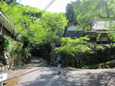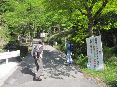 ![]() 8:45 芹川沿いに車を止めて、 甲頭倉集落への林道へ入って行く。 |