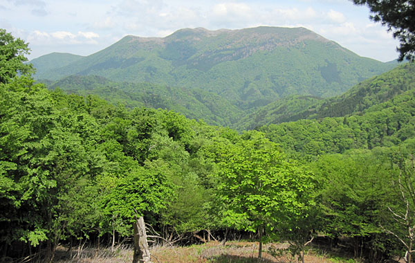 ![]() 霊仙山 比婆神社から登り返したところに展望が開けた個所がありました。 そこから望む霊仙山(鈴鹿山系最北端の山)は雄大で素晴らしかったです。 |