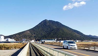 野洲川の河川敷広場からの三上山(近江富士) (守山市側からの眺め)