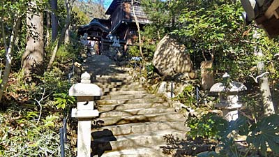 ![]() 大日如来の岩 境内を抜けて妙光寺山へ登って行く。 |