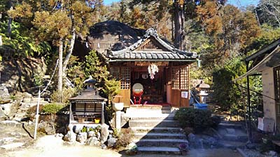 ![]() 分岐からすぐの「岩神」前を通って妙光寺山磨崖仏へ。 |