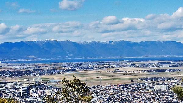 ![]() 北東方面 ズームアップすると雪をかぶった伊吹山も見えました。 |