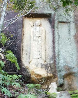 ![]() 分岐から約70mで磨崖仏に着きます。 |