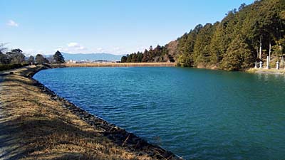 国道(R8)から別れて東へ、 住宅が途切れたところから御池へ ![]() 三上山が間近に迫ってくる。
