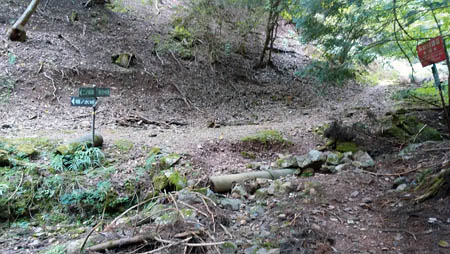 ![]() 12:57 滝谷峠への道標のある合流点に着く。