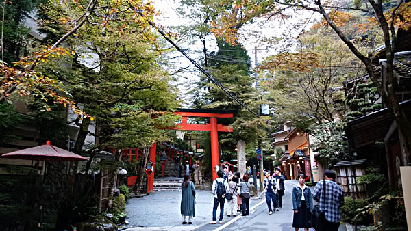 貴船神社の裏側から境内に入ったので、通常の逆道を下って正面の鳥居へ出る。 貴船神社正面の鳥居 次は鞍馬寺の火祭を見るため急ぐ。 15:20 急ぎ足で貴船川の境内入口に着いたが、受け付けの方から今から鞍馬山(鞍馬寺)越えしても、すでに火祭見る人で身動きつかない状態なので入門させてくれない。残念ですが、このまま貴船駅へ向かうようアドバイスされる。心残りですが仕方ないので、湖のまま帰宅することになりました。 |