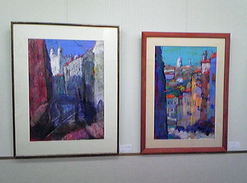 色彩豊かなポルトガルの街角と大作・人物デッサン多数出展されています。