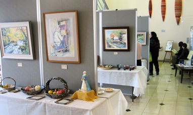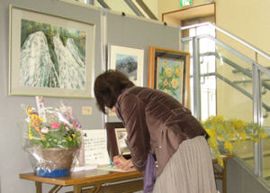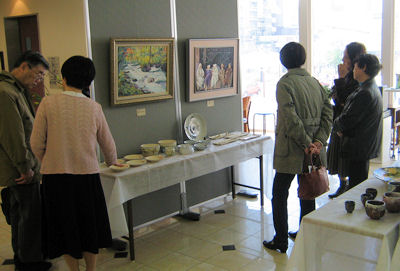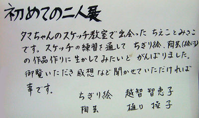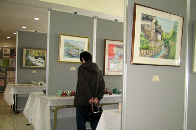 守山の平和堂で水彩スケッチ教室(楽修院)をされている児玉紘一さん(愛称:タマちゃん)からTELが入る。昨日までタマちゃん教室の”楽修院水彩スケッチ展”が開催されていたJR守山駅前総合案内所で引き続き、教室のメンバーの越智さんと陶芸の樋口さんの二人展がはじまったよ・・・と、会場にいるというのでさっそく出かけててきました。 |