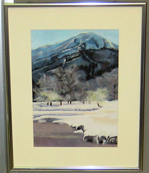 10年続けておられるという越智さんの”ちぎり絵”はまるで油彩画のような重厚なタッチにびっくりしてしまいました。沢山の出品作品の中から私の独断でこの二つの作品をアップさせていただきました。 |