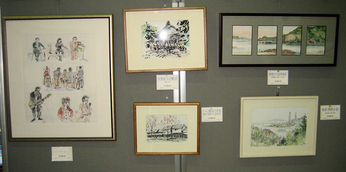 ![]() どれも現地スケッチです。鉛筆、水彩、ぺん、住筆などです。 左端はいつも持ち歩いているミニスケッチブックで描いた作品を貼り合わせました。 |