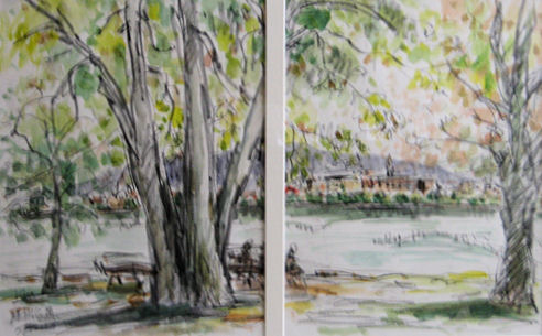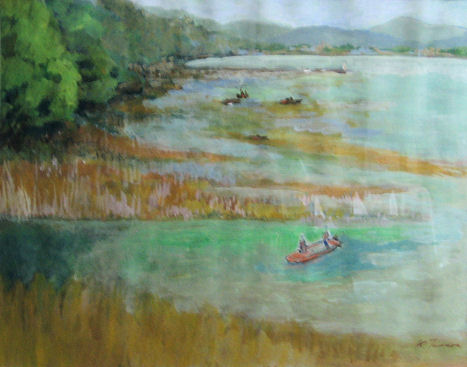 ![]() 爽やかな朝の膳所公園 まだ使い方もよくわからないアクリル絵の具でトライしました。水を少なくちょっと油彩風に仕上げました。 |