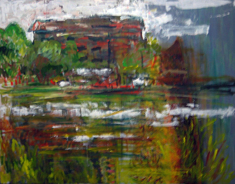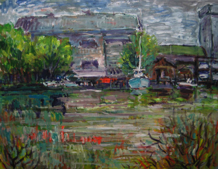 スケッチをもとにわが町滋賀・守山市の琵琶湖岸(内湖)を描く。