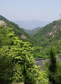 登山道に入りどんどん登って行くと先ほどの大きな堰堤の上に出た。なかなか見晴らしがいい・・・きゅうに高度を上げて行く