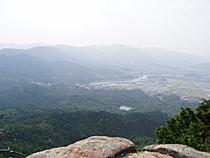 八畳岩から湖南一帯の展望、瀬田川の流れが見える。