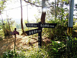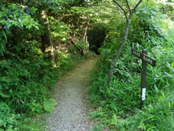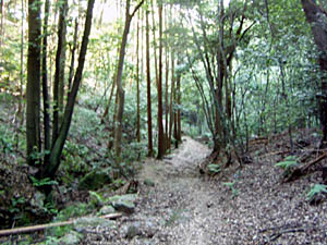 16:45展望個所からすぐ金竜寺跡への道標があり再び薄暗い樹林の中へ |