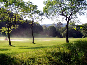 16:20頂上らしきところに着いたが展望はない。だがその先が明るく開けている、なんだゴルフ場だよ!。
