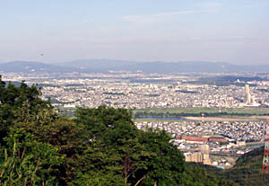 三角点を過ぎ少し行くと左手に展望台の案内がある。枚方から大阪市内のビル群まで見渡せました。