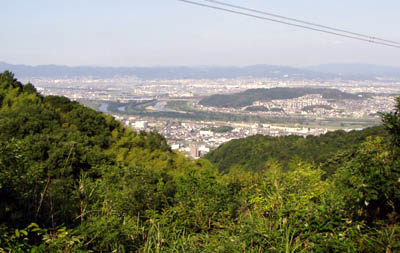白い水平線みたいなのが名神ハイウェイ、その後方が若山です。