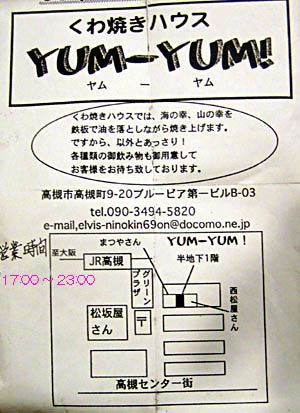 暑い一日、多汗をかいたので喉はからからお腹はグーグー言っている。JR駅から阪急に向かうところにタイ料理(YUM-YUM!)みたいなカンバンのお店が目に入るのぞいてみました。こじんまりしたお店に感じのいいマスターが・・・