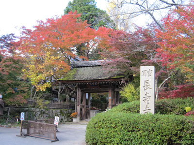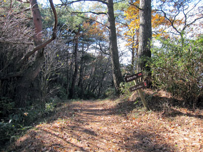 だんだん紅葉が・・・お寺パスしたかいがありました。 直進すると頂上までは10分の道票があらわれる。 ここを右へ折れると西寺(長寿寺)へ下山できる別のコースがありました。 下山のとき歩いてみたいが、今回は中腹まで車で来ているのでできない。残念・・・ |