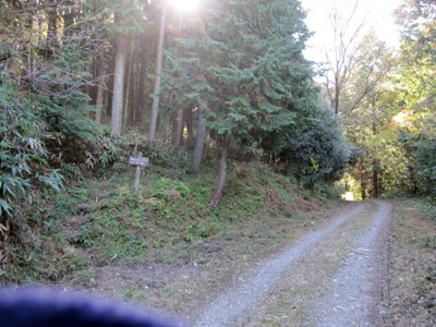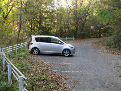 ![]() 中腹にある駐車場に車を止めて出発。 林道入り口には登山口まで5分とある。 |