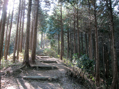 ![]() 初めは鬱蒼とした杉の植林帯を行く 入り口に頂上まで40分と書いて。ありました |
