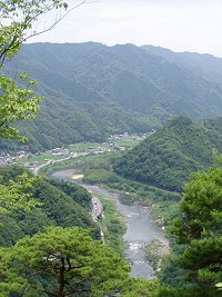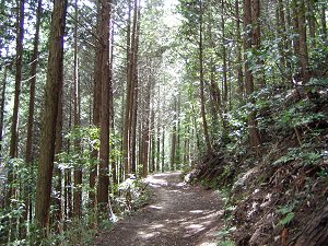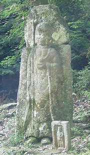 | 東海自然歩道の道標に従い川を渡るとすぐ阿対地蔵だ。柳生の町はもうすぐだ。笠置山で時間をくったため柳生の史跡見物はパスして奈良へ向かう。東海自然歩道沿いに”十兵衛杉”を見てやがて奈良行きの道路を横断、道標にしたがい家老屋敷に向かう。 |