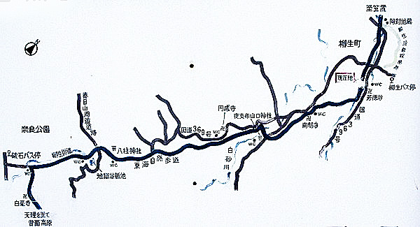 17:00 やっと奈良市内の破石(わりいし)バス停についた。東海自然歩道は破石のちょっと手前で左折して白豪寺へ向かい、山の辺の道へと続きます。