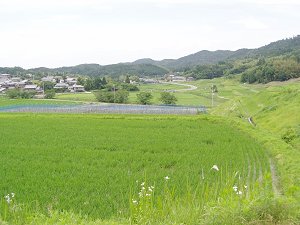 | 奈良市の須川に入り舗装道路を下ってくると茶畑や民家が見られる。 |