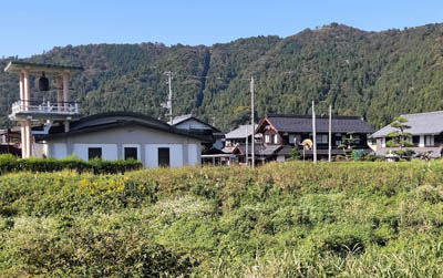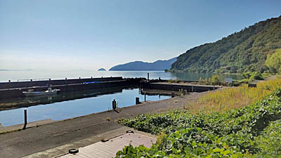 | 20年前に来たときは、この交差点には「奥琵琶湖ドラブイン」があって賑わっていたが、いまは廃業、建物だけが空しく残っている。ここ飯浦からは生竹島行きの船も出ていた・・・。 |