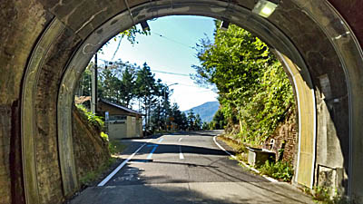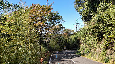 | 隧道を抜けると下り道、木々もちょっぴり紅葉が・・・。 |