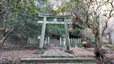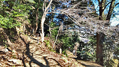| 樹林帯の中の道を「新羅三郎義光のお墓」に向かって歩いていく。 |