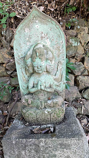 | 長安寺から右へ、何度も歩いている道を歩く。この道には小さな石仏がある。 |